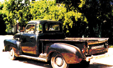 Many thanks to all who helped us get this ole truck back on the road; not least of whom are Ted and Miq, Mike Jensen, who provided the wheels and tires, and Grant Galbraith who sent us the hubcaps and a speedometer cable!